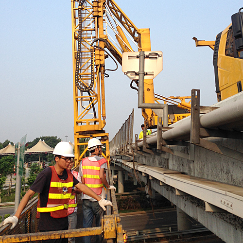 橋梁檢測車廣泛適用於大中型橋梁的病害維修和預防性檢查作業,如對大橋下麵各結構進行全麵的檢查、維修與維護(油漆、噴砂、安裝、拆卸),包括對大橋主梁梁底裂紋檢測和全橋支座檢查養護,也可以安裝和維護橋下管道和電纜。