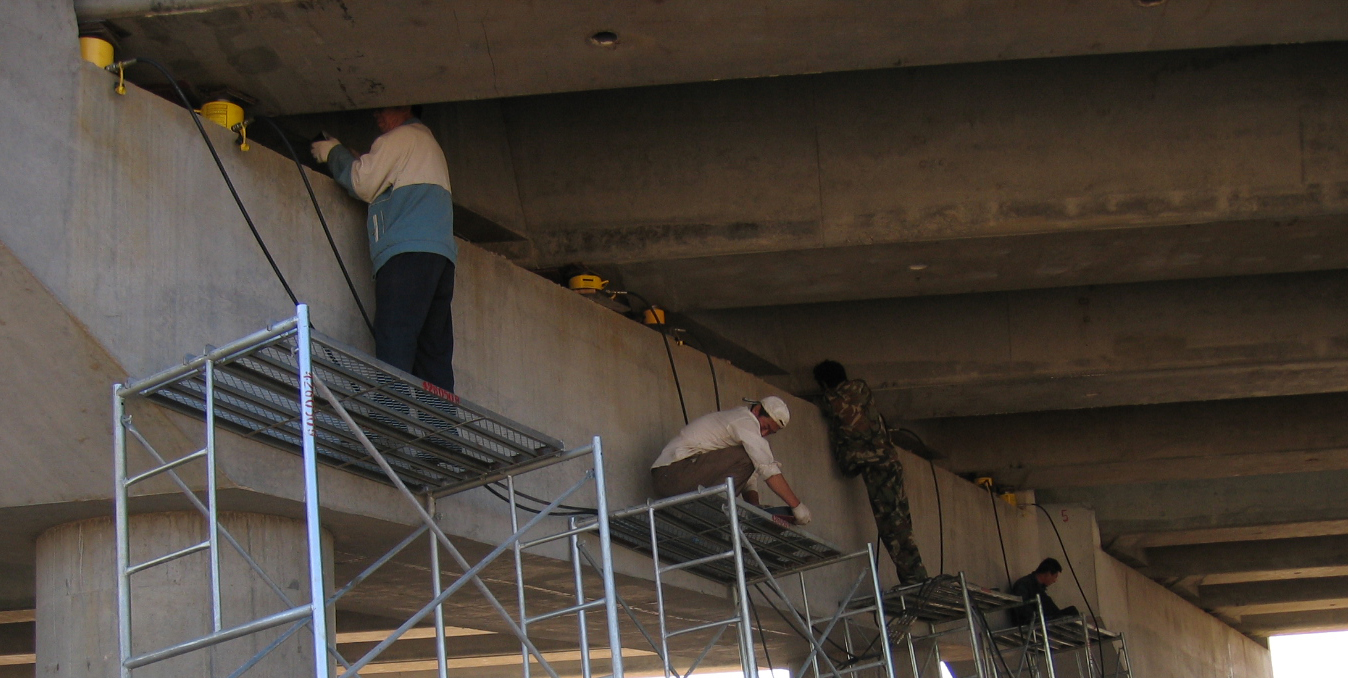支座更換的安裝內容:橡膠支座在安裝前,應檢查產品合格證書中有關技術性能指標,外委檢驗合格後方準使用。支座下設臵的支承墊石,混凝土強度應符合設計要求,頂麵要求標高準確,表麵平整,避免支座發生偏歪、不均勻受力和脫空現象。安裝前應將支座墊石頂麵鑿毛,用環氧樹脂水泥精確調平,支座頂麵標高比設計標高低1cm。